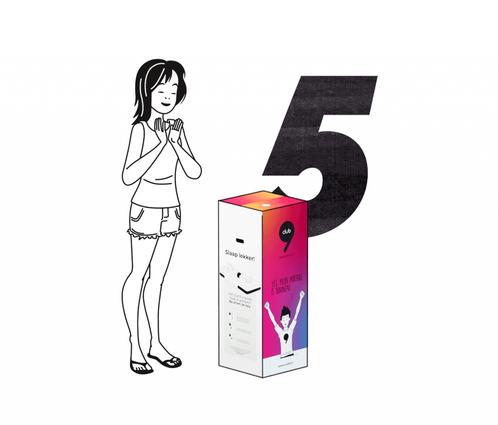 Wanneer je een matras abonnement hebt bij Club 9 kun je 5 jaar lang goed slapen. Wij komen na 5 jaar het Club 9 matras weer ophalen en brengen dan een nieuw matras mee., zodat jij je bed niet uit hoeft (oké, vijf minuten dan, om het matras om te wisselen😉). Je abonnement gaat dan weer opnieuw van start.